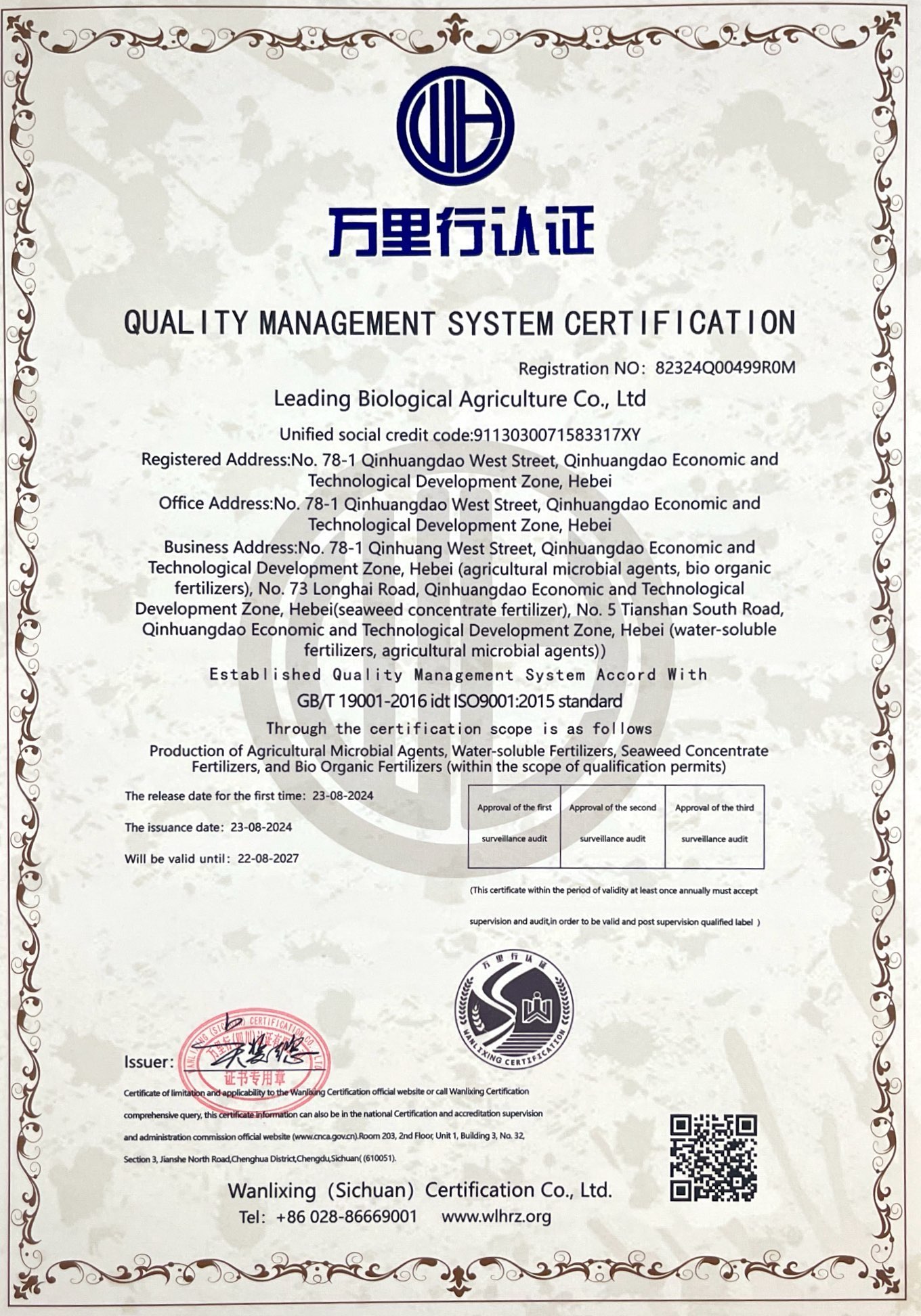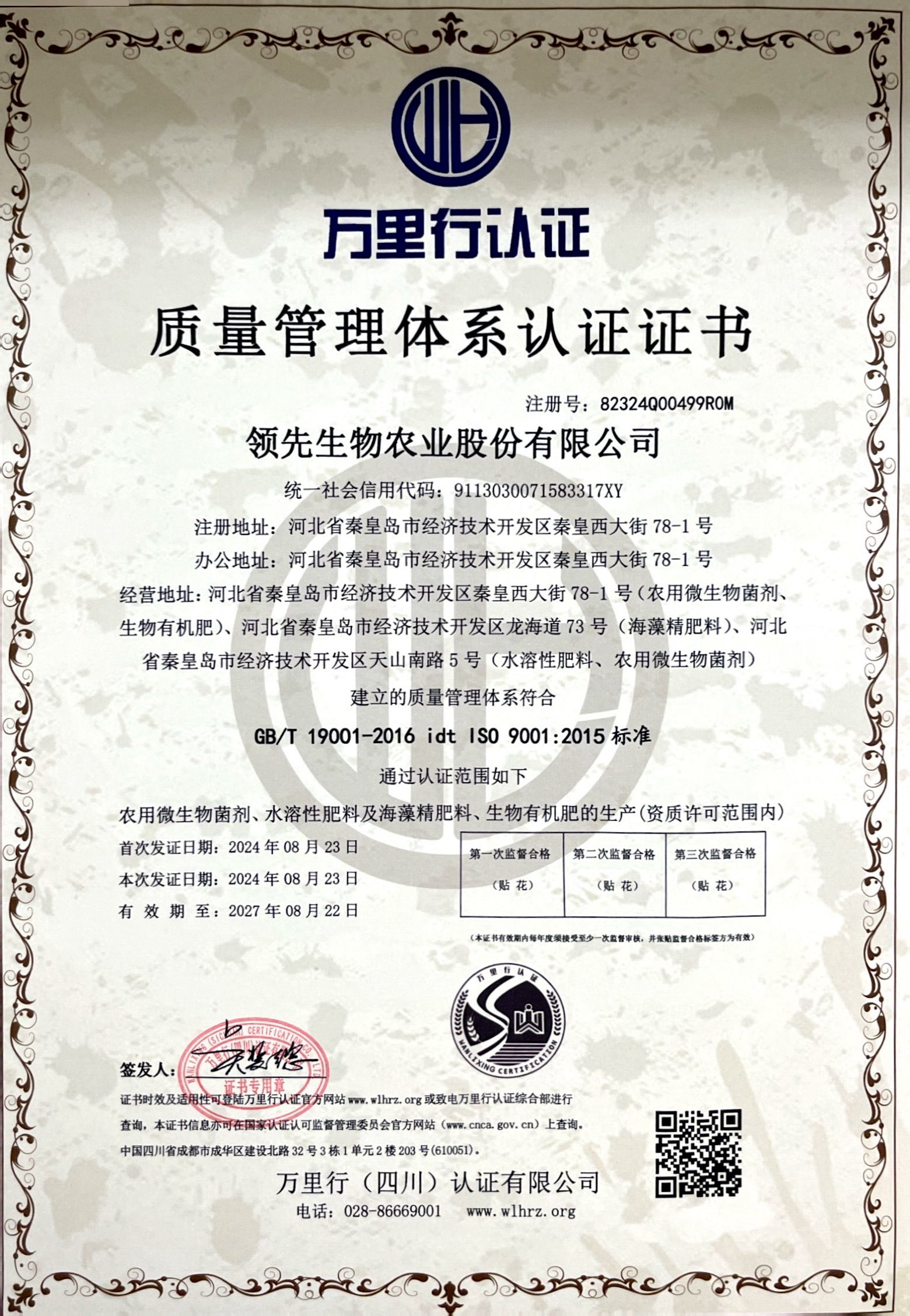 質(zhì)量管理體系認(rèn)證證書(shū)